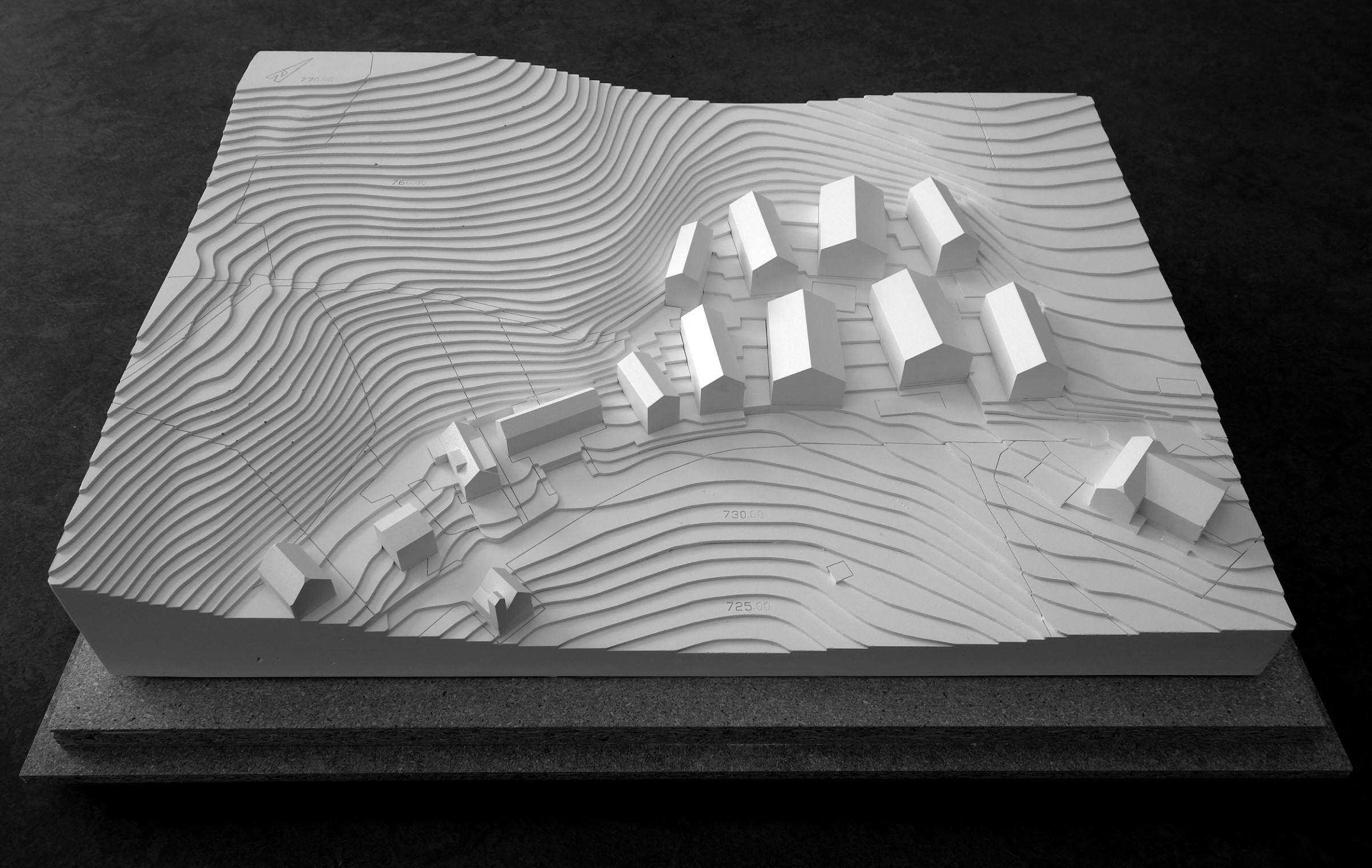 Ein sich aus vier unterschiedlichen Gebäudetypen zusammensetzendes Ensemble bildet den neuen Weiler Rosengarten. Struktur, Dachform und Materialisierung der Neubauten sind von traditionellen Bauernhäusern abgeleitet. Sämtliche Wohnungen sind Ost-West-orientiert, die leichte Ausdrehung der Bauten ermöglicht Fernsicht. Beidseitig vorgelagerte Lauben dienen sowohl der Erschliessung als auch als privater, geschützter Aussenraum.