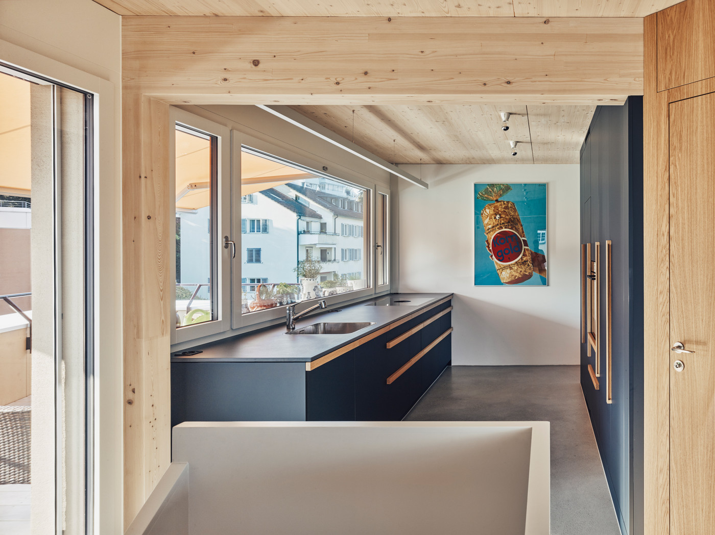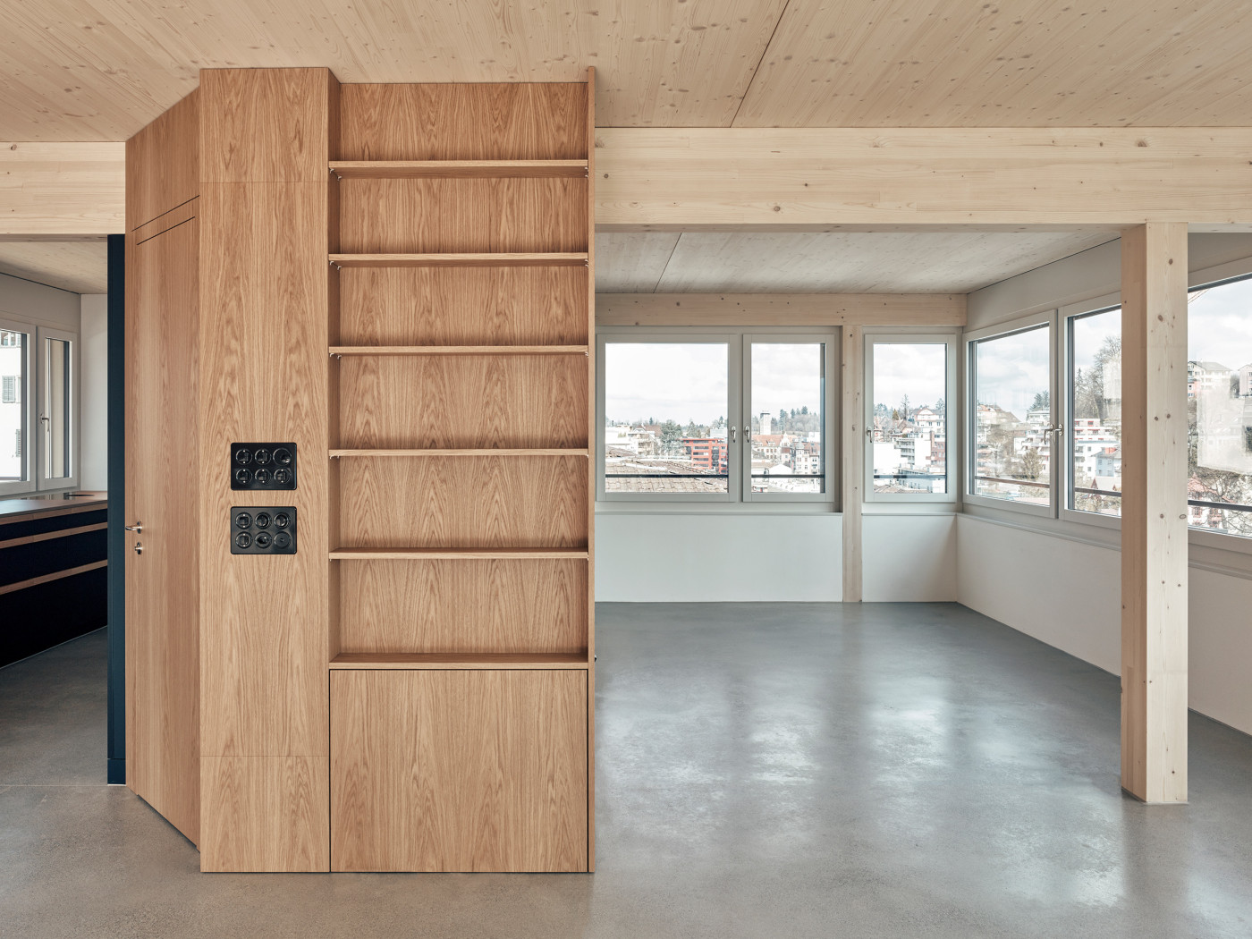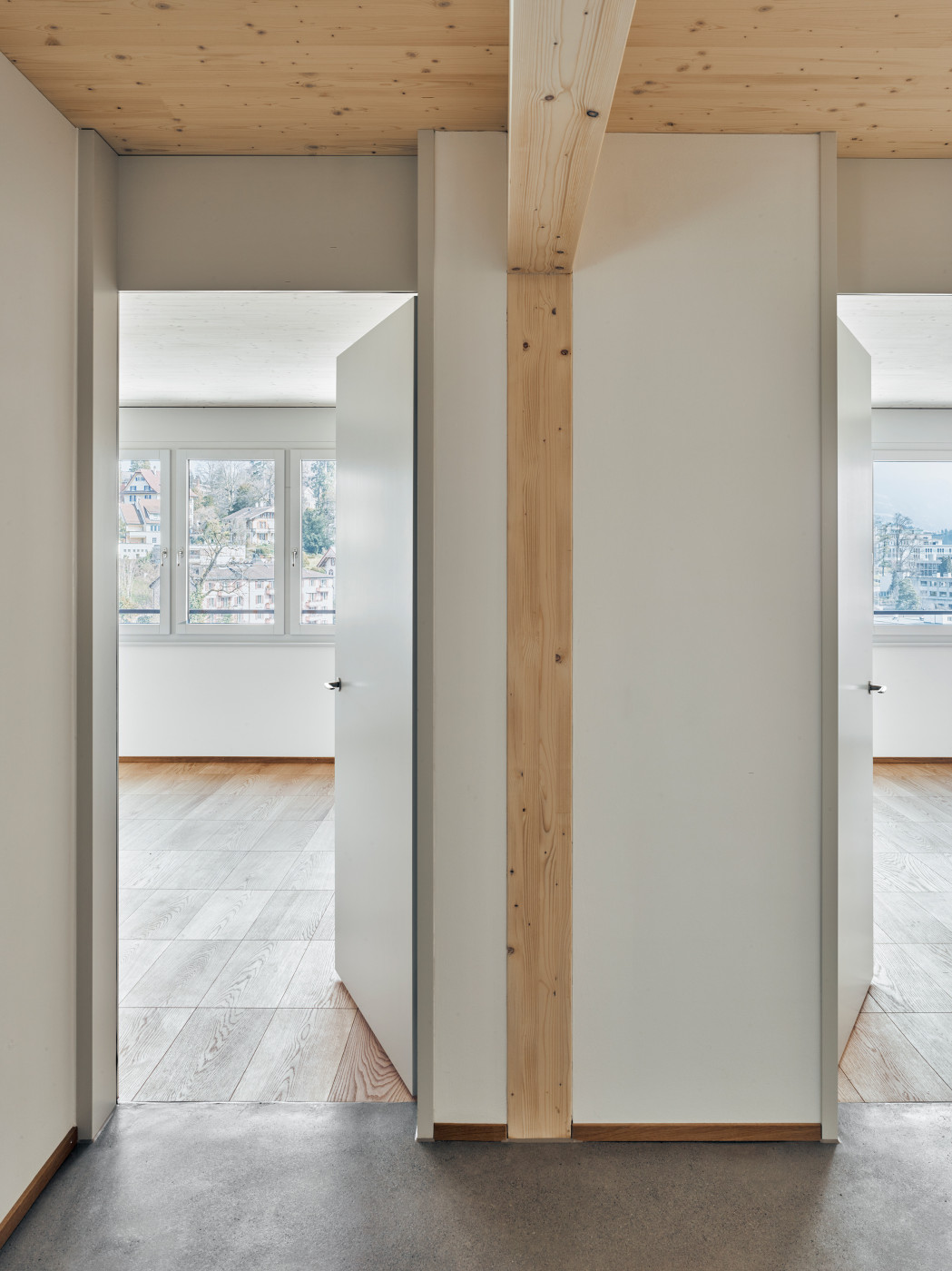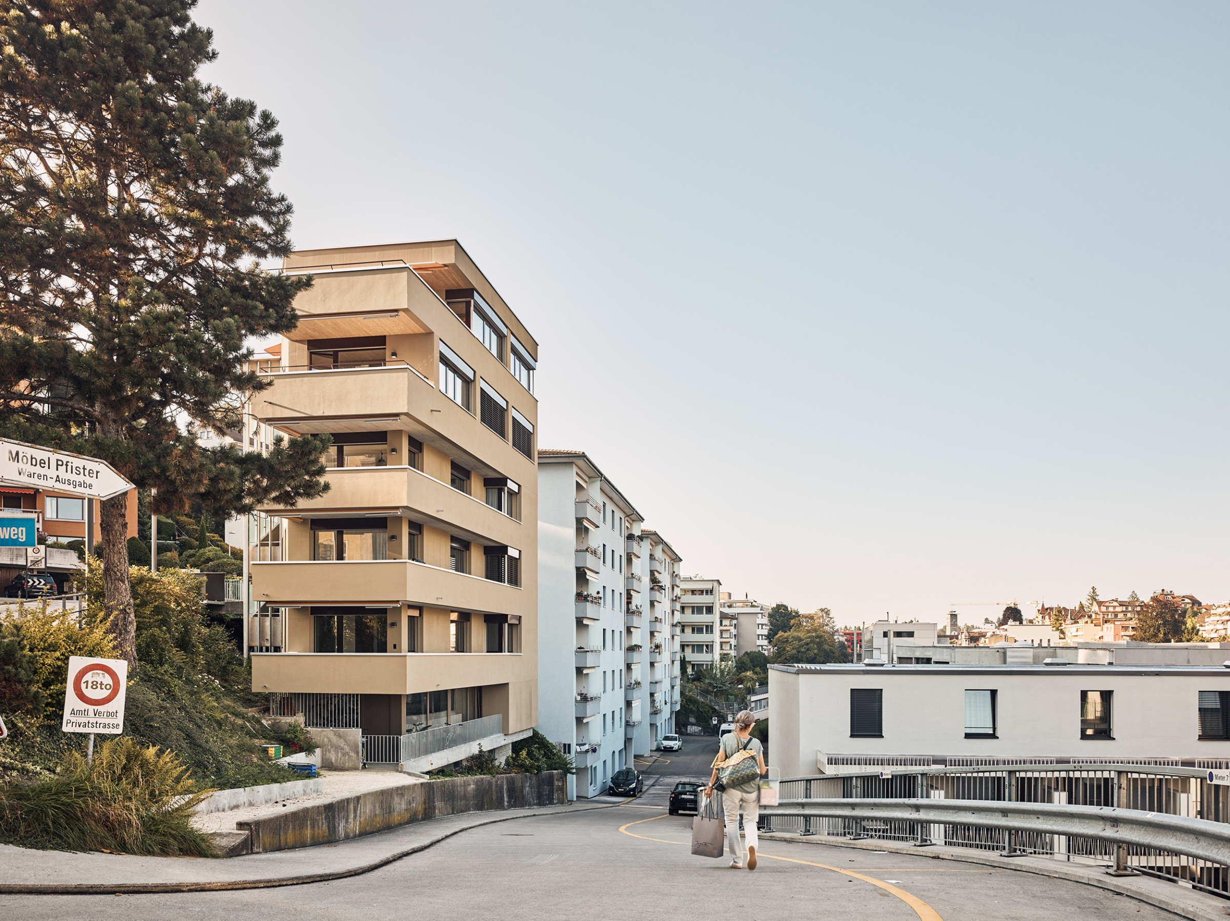 Anstelle der Dachterrasse wird eine vierte, deutlich grössere und über zwei Geschosse verlaufende Wohnung erstellt. Mit dem zusätzlichen Vollgeschoss erreicht die Fluhmattstrasse die Traufhöhe der im Norden angrenzenden Bauten. Aus Gründen der Gewichtseinsparung wird der Aufbau in Leichtbauweise ausgeführt. Die zusätzlichen Lasten werden über die vorhandene Gebäudestruktur, die tragenden gemauerten Aussenwände und die sich im aufgeständerten Untergeschoss abzeichnenden Betonstützen abgeleitet. Das bestehende, in Ortbeton konstruierte, Treppenhaus steift das Gebäude aus und bleibt unverändert.