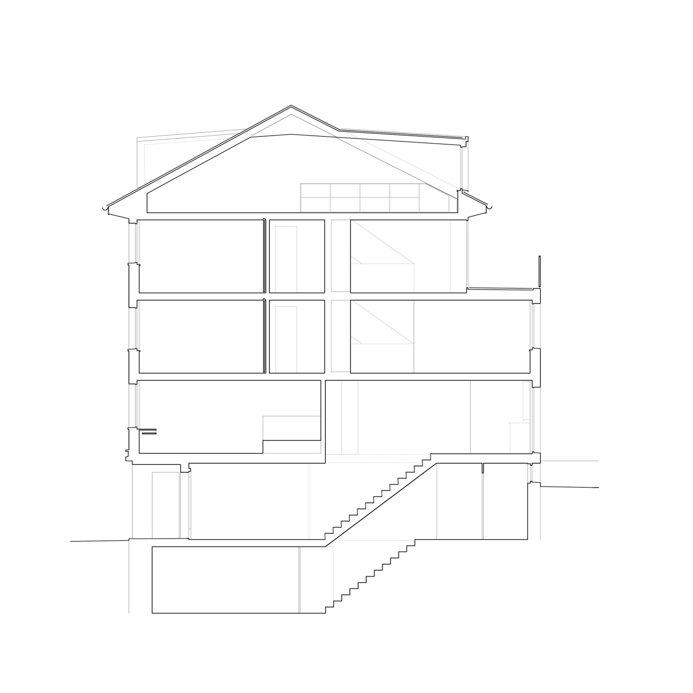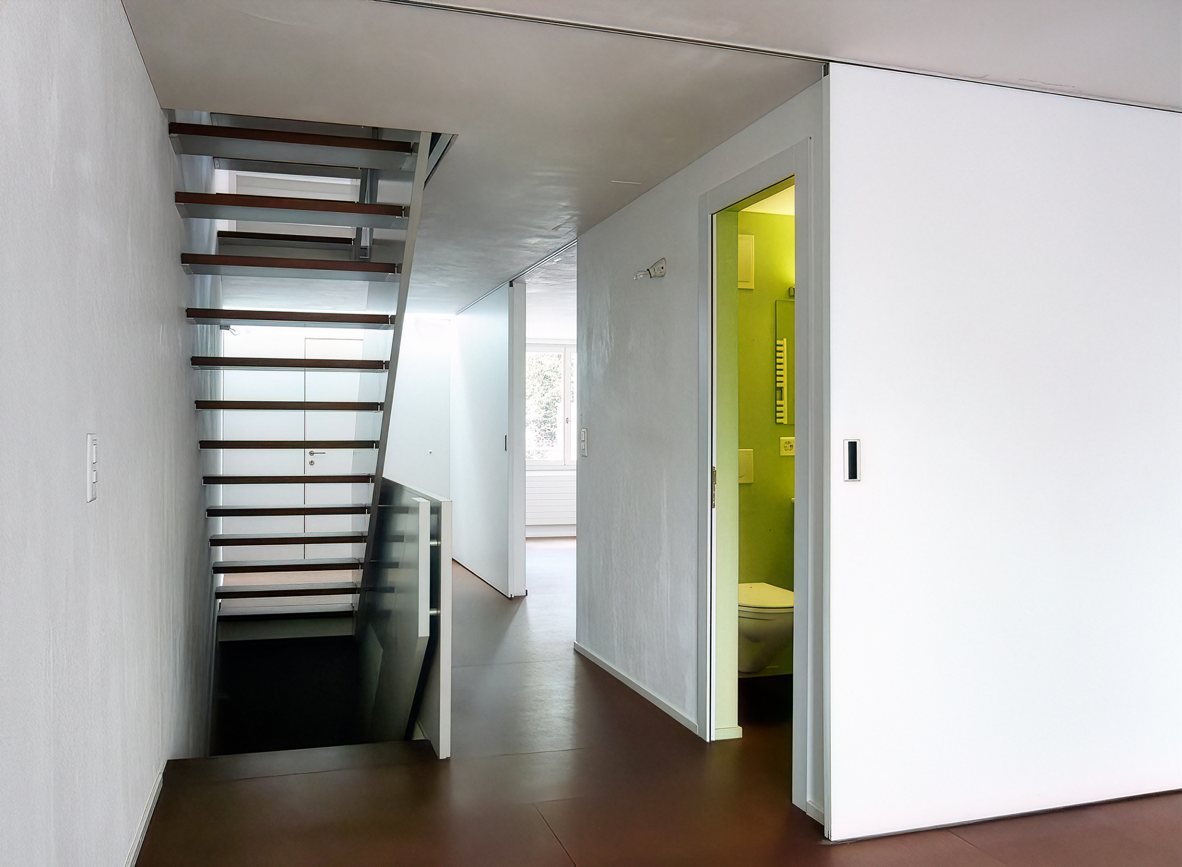 Entgegen den Eingriffen im Innern blieben die Fassaden unverändert. Einzig die grosse Balkontüre in der Nordfassade deutet an, dass die ehemalige Waschküche mit Balkon der neuen Wohnküche, mit der von den Bewohnern äusserst geschätzten Terrasse, weichen musste.