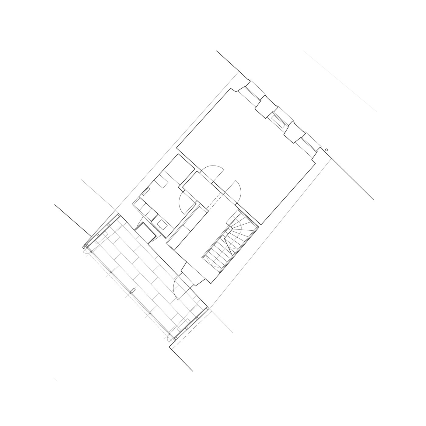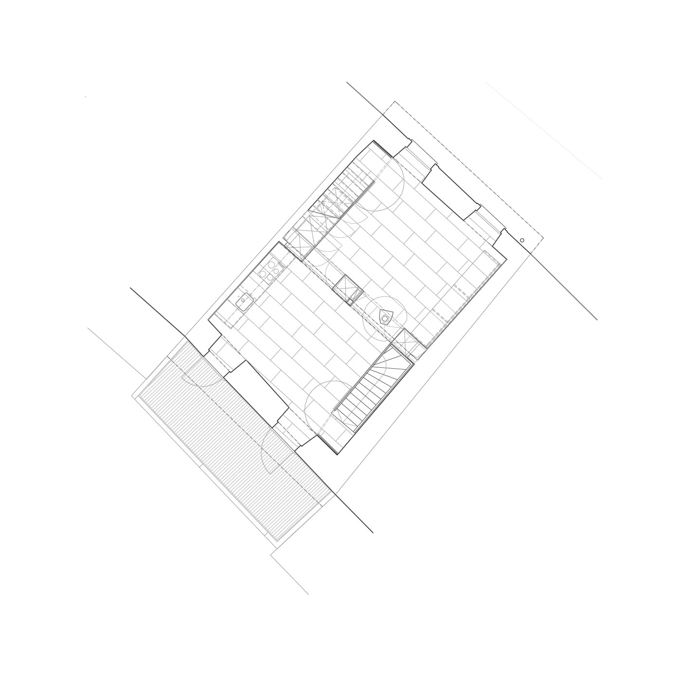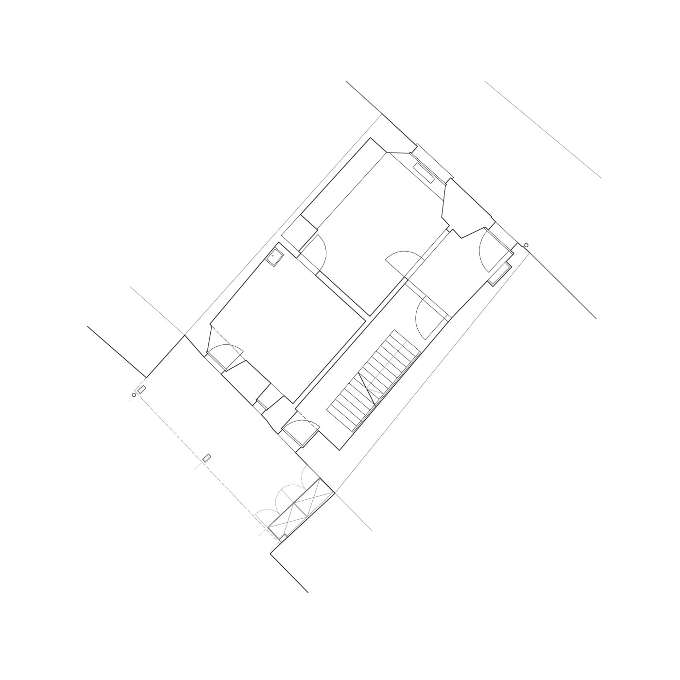 Die ursprünglich kleinteilige Zellstruktur des zweiten Obergeschosses wird zugunsten einer offenen, zur Terrasse hin orientierten Wohnküche aufgehoben. Die an die Brandmauern gerückten Treppen und Einbauten ermöglichen einen grosszügigen Raumeindruck auf bescheidener Grundfläche. Das Dachgeschoss, vormals Wohnraum, wird neu als Elternschlafzimmer mit offenem Bad genutzt.